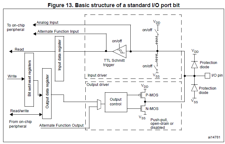 GPIO블럭도는 STM32데이터시트에 있는걸로 보겠습니다. 그 외의 MCU들도 GPIO구조가 다 비슷하다고 생각합니다.