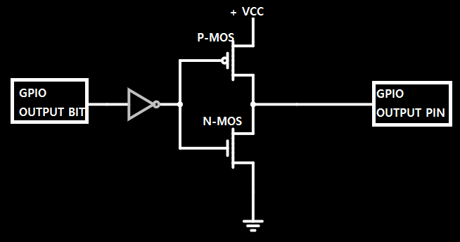 GPIO OUTPIN BIT가 HIGH면 GPIO OUTPUT PIN에 VCC가 연결됩니다.