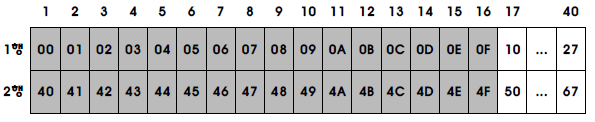 2행 1열로(두번째줄의 첫번째자리)가고싶으면 1100 0000을 입력하면 됩니다.