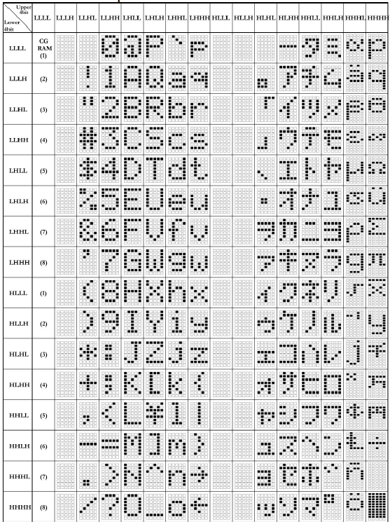 CGROM이란 CLCD가 저장하고있는 문자입니다. 문자들의 주소는 아스키코드 값과 같습니다. 그리고 CLCD는 아스키코드에 없는 일본어를 가지고있어서 일본어도 입력이 가능합니다.