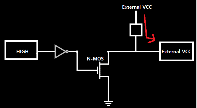 Open drain은 push-pull에서 P-MOS를 사용하지않고 N-MOS만 사용합니다.