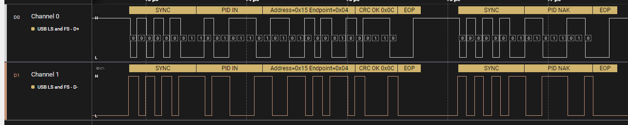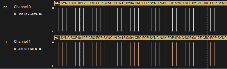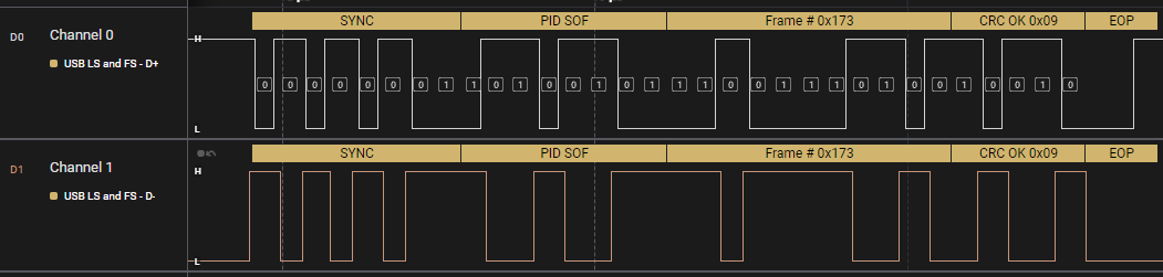 호스트가 SOF패킷을 보내면 디바이스에서 응답을하는것을 볼 수 있습니다.