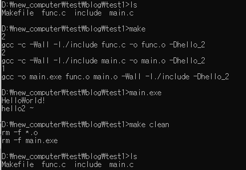Makefile을 이용한다면 make만 타이핑해도 main.exe가 만들어지게 할 수 있습니다.