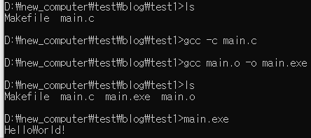 main.c를 오브젝트파일로 생성하려면 gcc -c main.c을 하면 됩니다