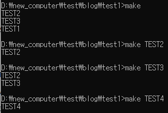 make를하면 첫번째 타겟이 실행됩니다. 여기서 첫번째타겟은 TEST1입니다.