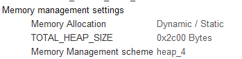 이 예제에서는 LED관련 파라메터를 만들고 태스크를 만들때 파라메터를 넘깁니다. 그리고나서 파라메터를 이용해서 태스크를 만들게됩니다. 해당코드를 넣어보면 LED가 2개만 나옵니다. 기본으로 설정된 heap용량이 부족해서 그러므로 늘려줍니다. (TOTAL_HEAP_SIZE)