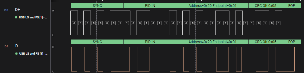 1001은 PID IN입니다. PID IN은 호스트가 디바이스에게 데이터를 요청한다는 의미입니다.