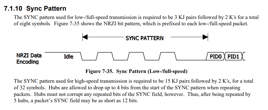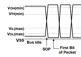 Start-of-Packet(SOP)의 설명을 보면 데이터라인이 IDLE에서 K state로 변할때입니다. IDLE는 J상태입니다.