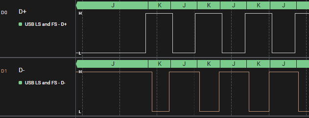 그러므로 J면 D+가 LOW, K면 D+가 HIGH라고 생각하면 됩니다. (FS면 반대입니다)