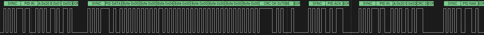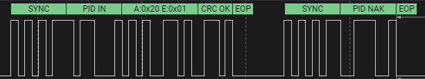 컴퓨터는 키보드에게 주기적으로 IN패킷을 보내서 키 입력이 있는지 확인합니다. 만약 키보드는 보낼 데이터를 준비하지못했으면 PID NAK을 보냅니다.