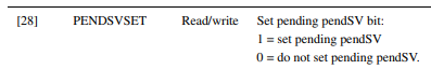 결국에는 0xe000ed04은 SCB->ICSR (Interrupt Control and State Register)이고 값을 (1UL<<28UL)로 세팅합니다.