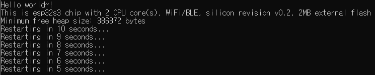 "COM PORT"에 연결된 comport 정보를 넣습니다. (예시 : COM12 => idf.py -p com12 flash)
