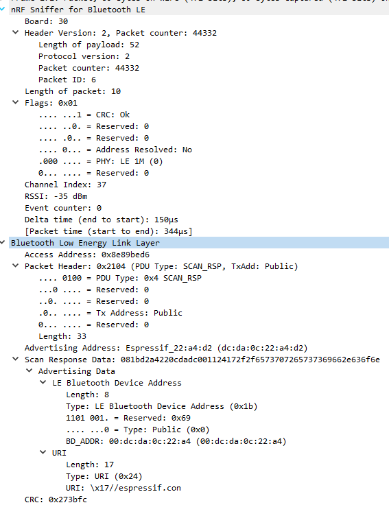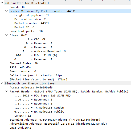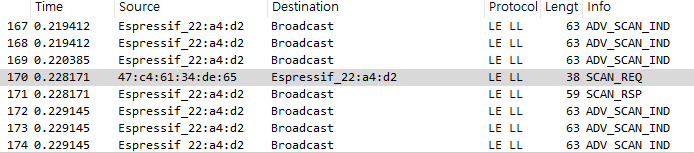 제가 봤던 sniffer 데이터는 ESP가 주기적으로 광고하는 ADV_SCAN_IND타입이기때문입니다.