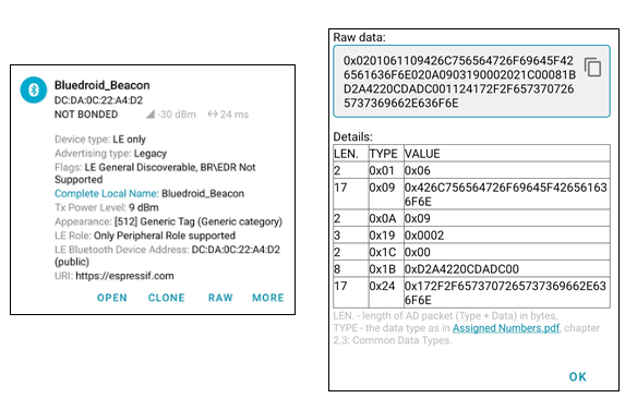 0x0201061109426C756564726F69645F426561636F6E020A0903190002021C00