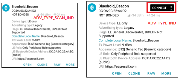 | 3 | ADV_TYPE_NONCONN_IND | X | X |
