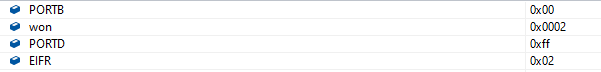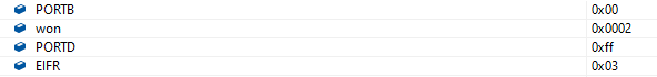 EIFR의 1번째비트가 set되고 won=2 무한루프에 빠집니다. 이때 우선순위가 높은 인터럽트 0번을 발생시켜보겠습니다