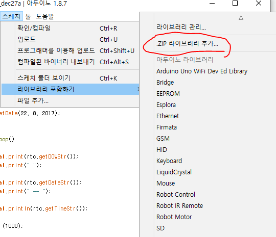 위의 파일을 다운받고 아래의 그림처럼 들어가서 라이브러리를 추가해줍니다